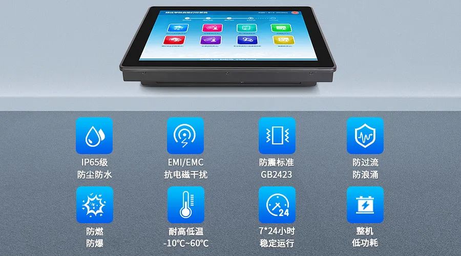 1、五代工業安卓一體機采用純平面設計,前面框IP65防塵防水,結構堅固耐用,可有效應對污水處理廠區灰塵與濕潤環境